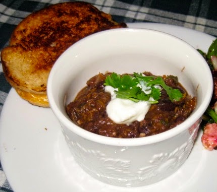 NOTE: If you have an immersion blender, you could add all ingredients except half the beans and the water to the sauteed onions and blend until the mixture is smooth. Then add the remaining beans and water, continuing with step 5 above.