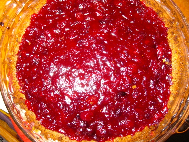 The recipe that follows is one that will substitute very well for cherry pie, at a much lower price. Don’t skimp on the almond flavoring, and do try my daughter-in-law’s innovation of a graham cracker crust instead of the standard pie crust. In order to enhance the almond flavor that enhances the cherry-like flavor, I have subbed in some ground almonds for part of the graham crackers. Of course, if you want the pie to really look like a classic cherry pie, you can spend lots of time making a lattice crust, but why bother when you can so much more quickly make this one that will taste just as good–or even better.