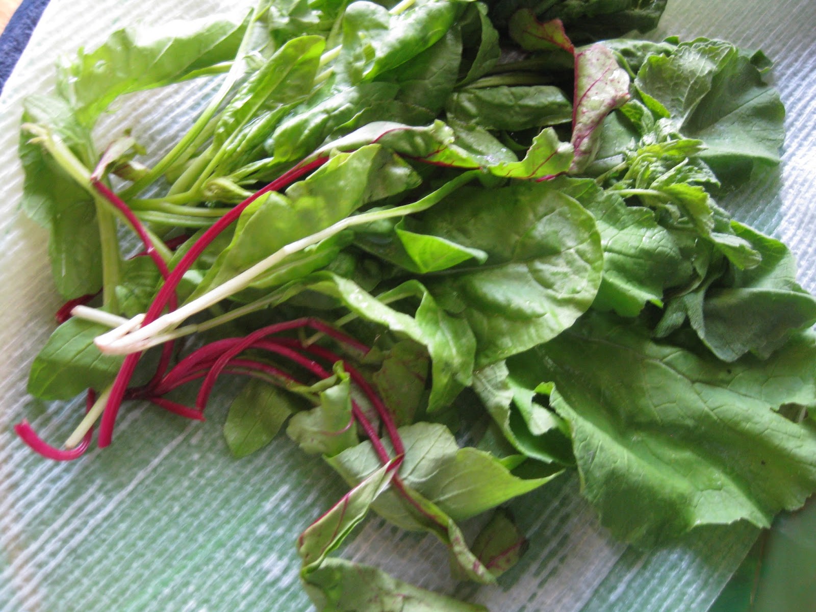 Not yet ready to venture into cooked radish greens, I soon had a series of wonderful salads, made up of thinnings from the rest of my garden. The radish leaves combined beautifully with tiny beet greens, baby kohlrabi and broccoli stems, and the earliest chard and spinach leaves.