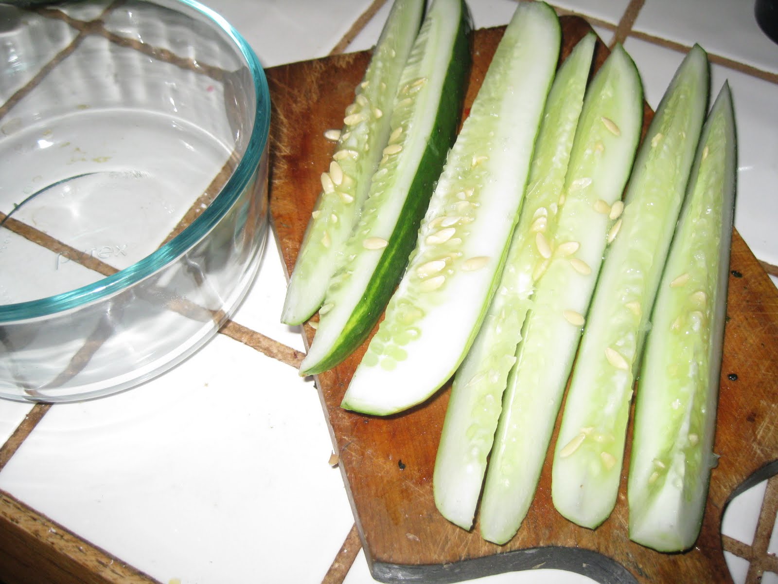 cucumbers–this amount covered about 3 large (6 to 7 inch) cucumbers