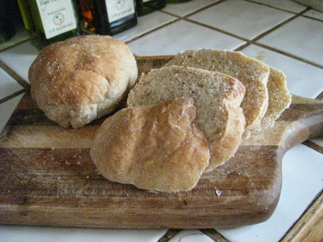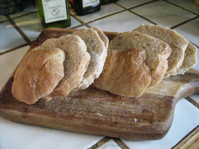 Once you become proficient with this method of toasting, you can do all kinds of things, like toasting the bread for your sandwiches and grilling the fillings at the same time or toasting a couple of slices of bread and then, with a few more drops of oil added, frying up an egg or two in the same pan for breakfast with minimal clean up. And, as the photo below shows, you can even slice up slightly stale rolls into rounds that could be a great base for your favorite bruschetta toppings.